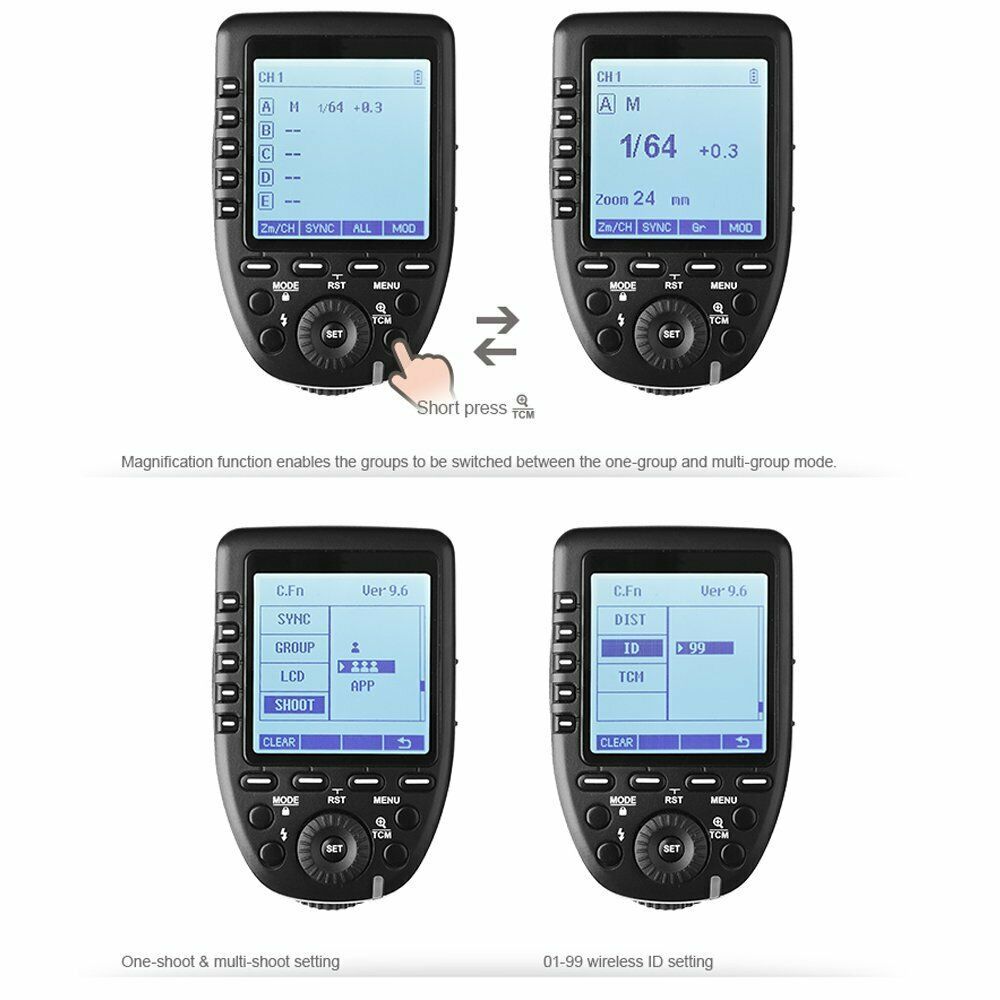 Fully support TTL autoflash. 1/8000s high-speed sync, multi flash, manual flash, flash exposure compensation, TCM transform function, magnification function, one-shoot & multi-shcx)t setting, group modeling lamp control, group zooming, adjusting all groups1 output value simultaneously, etc.