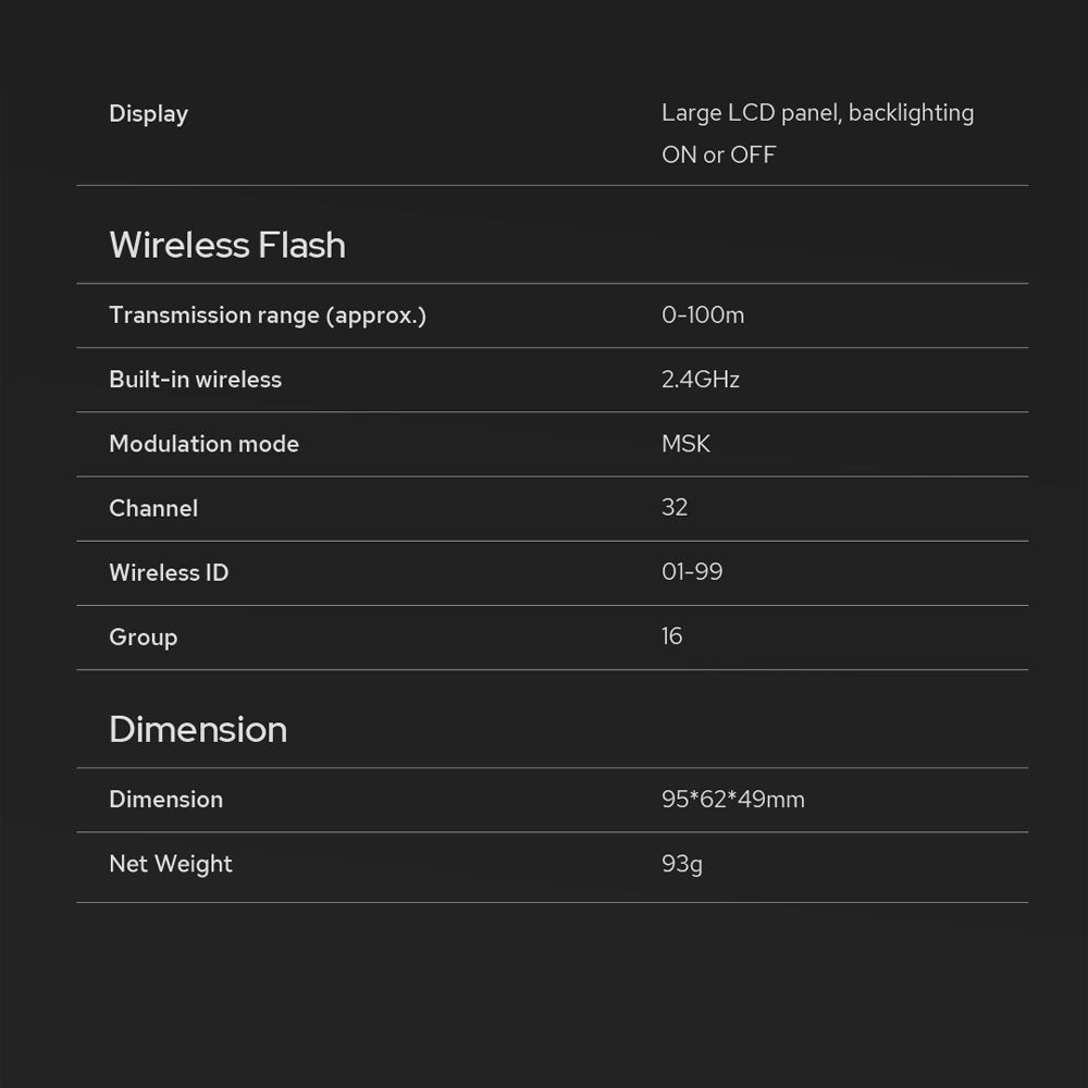 【Trigger Your Flash Remotely】Channel and ID allows you to remotely control and trigger the flash at any time. The flash can be triggered if both of flash and flash trigger are set to the same channel and ID. Separate channels and IDS can effectively avoid signal interference. If a number of flashes are used in a scene and you are searching the least intrusive channel and ID, an applicable channel was found by the scan feature to enhance your working efficiency.