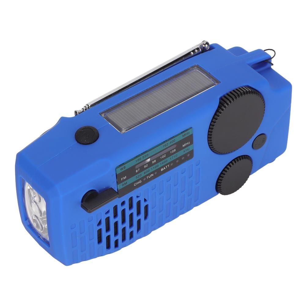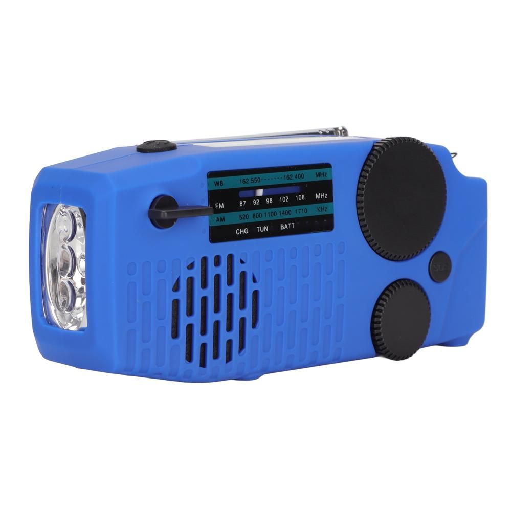 [LED Flashlight] This emergency radio is designed with an LED flashlight on the front and can be used in emergency and survival situations to illuminate dark areas or keep a room bright after a windstorm shuts down. Waterproof IPX3. It is a practical eme