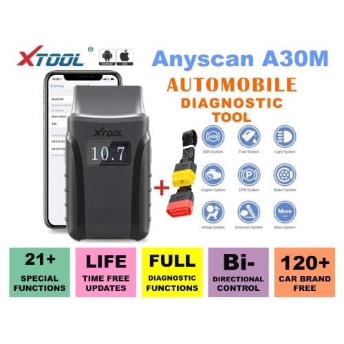XTOOL A30M is an upgraded obd2 adapter dongle that can access all available vehicle modules to perform a OE-Level comprehensive diagnostics, which you can previously perform these functions only in advanced diagnostic tablets, such as active tests.