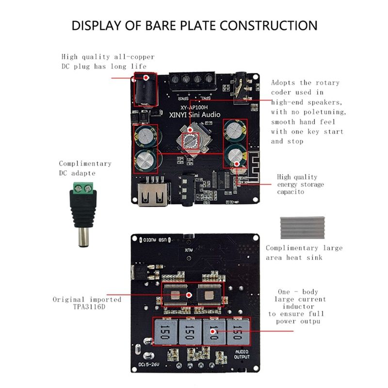 1X XY-AP100H 100W+100W Dual TPA3116D2 Bluetooth 5.0 Stereo Audio Digital Power Audio Amplifier Board AMP Amplificador AUX