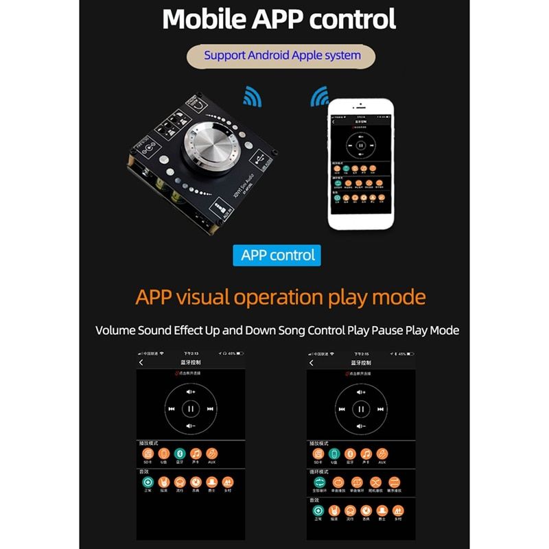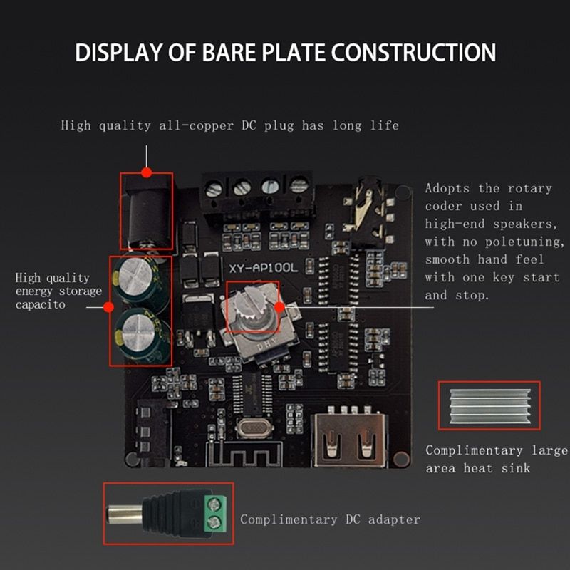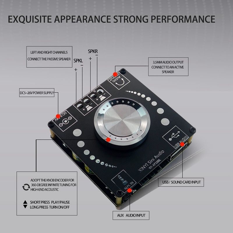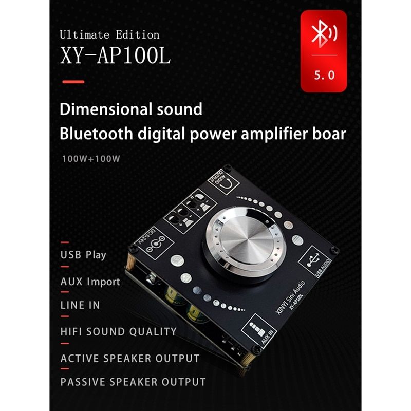 1X XY-AP100L 100WX2 Bluetooth 5.0 Stereo Amplifier Board AUX USB Sound Card Digital Power Amp Amplificador DC 12V 24V