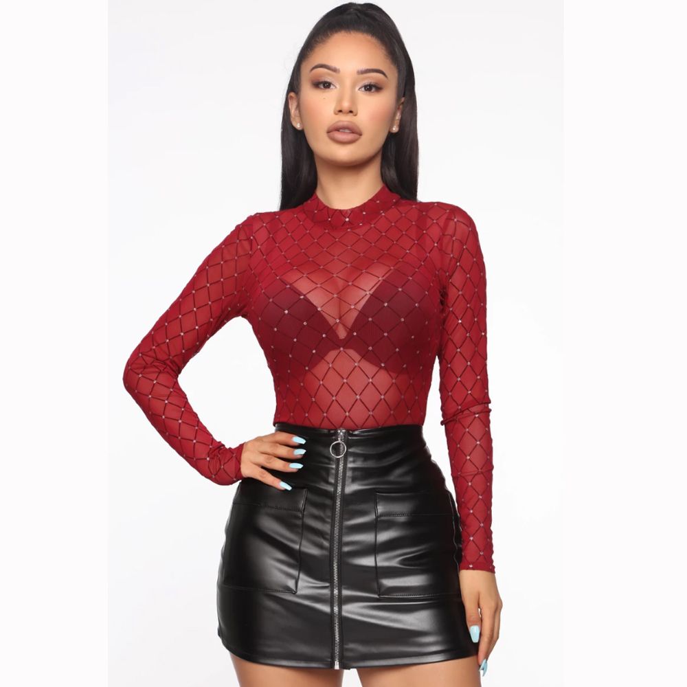 1X y Bodysuit for Women Long Sleeve See Throug Mesh One Piece Leotard Body Romper Jumpsuits T-Shirt Tops Streetwear NEW