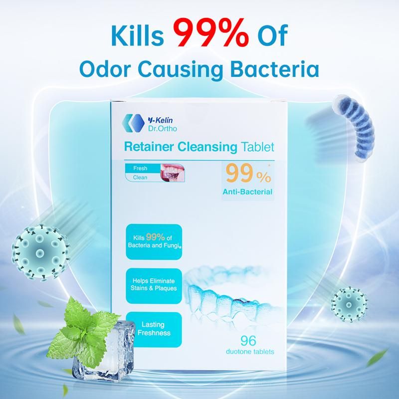 1. Effervescent 5-in-1 cleansing system; actively cleans, whitens and freshens retainers, dentures and other dental appliances