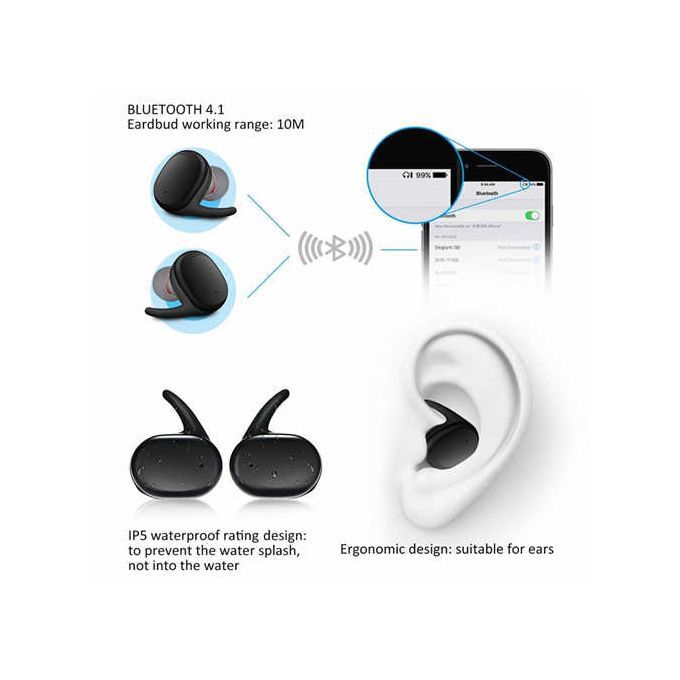 Description:This is the TWS4 wireless Bluetooth headsetA headphone design that fits the auricle of the human body for a firmer and more comfortable fitOne-touch, easy to operateNew upgrade, Bluetooth 5.0 chipTrue wireless, separate dual bodyCompact body, mini exquisiteIntelligent noise reduction, smart battery displayHigh quality headphones sound qualityspecification:Weight: 70gColor: black, whiteBluetooth version: Jerry V5.0Headphone battery: 50MAHBattery: Polymer lithium battery, 50 mA earphones, 300 mAh charging compartment.Specifications:Product model: TWS4Bluetooth version: Jerry V5.0Headphone battery: 50MAHStandby time: >100 hoursTalk time: >4.5 hoursListening to the song: 4 hoursBattery: Polymer lithium battery, 50 mA earphones, 300 mAh charging compartment.Charging time: 40-50 minutes for the headset 1 hour for the charging compartmentComfortable to wear, compact and portableHigh quality sound qualityWearable while exercisingWaterproof designPackage Included:1* pair of headphones / charging compartment / usb charging cable / manualNotes:Pairing method1 Unpack and place the left and right headphones into the charging compartment. The headset is lit red. If it is not lit, please charge the battery.2 The headset is automatically turned on from the charging compartment, automatically paired, wait for about 30 seconds, one of the headset lights is off.The other headset flashes red and blue, the machine is the main ear. At the same time, the pairing is successful.3 Turn on the phone Bluetooth, search for the headset Bluetooth name "TWS4" and click on the connection.4 After the headset is used, put it back in the charging compartment, and the headset will automatically shut down and charge.5 Use the headset again, take it out from the charging bin and turn it on automatically. The automatic pairing will also connect the phone.