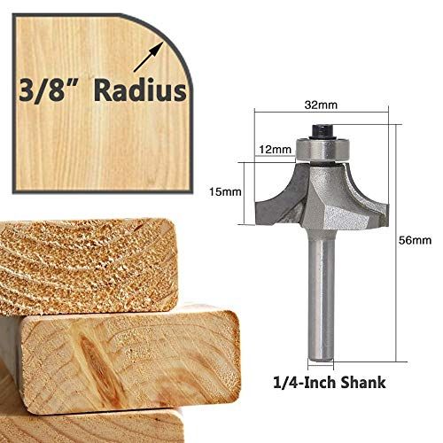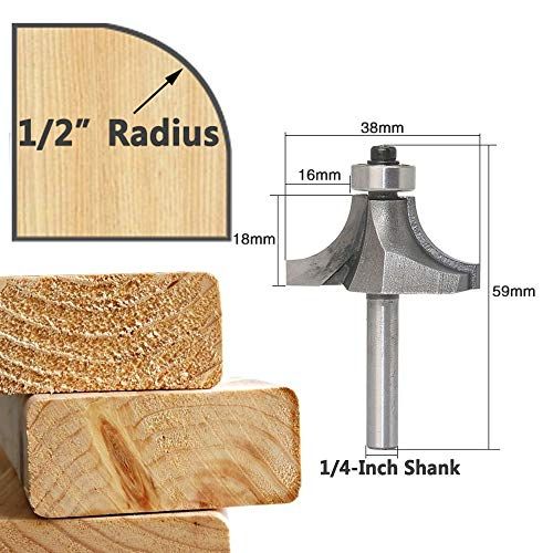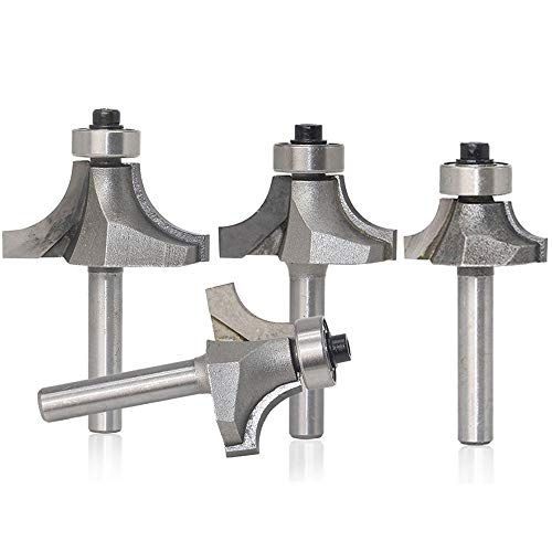 - 4-Piees Carbide Round-over Router Bit Set: 1/2" 7/16" 3/8" 1/4" Radius, Bearing Dia. 1/2", 1/4" Shank