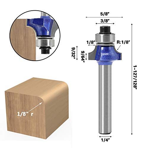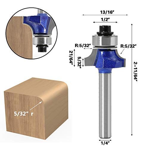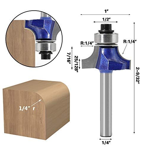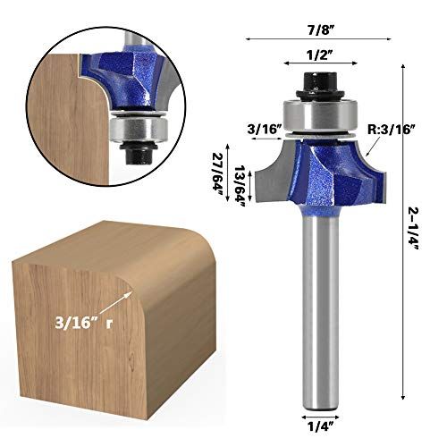 - Shank: 1/4-Inh, Shape: Round-Over, Cutting Radius: 1/4" 3/16" 5/32" 1/8" RadiusCutting Height: 7/16", 27/64", 21/64", 9/32"