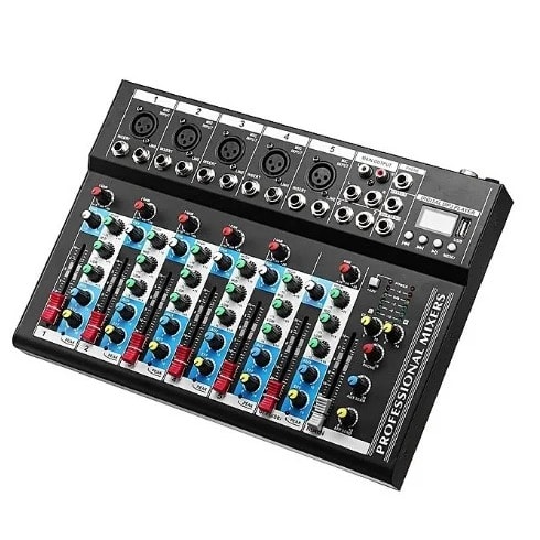 F7 channels Analog Audio Mixer is suitable for DJs,small events or gathering and even big live performance shows. Coupled with the best designed materials, this mixer gives a sound quality that almost match a professional set-up.Due to its phantom it makes it usable with condenser mics therefore making it also recommendable for big and small scale studios. Also have EQs on each channels