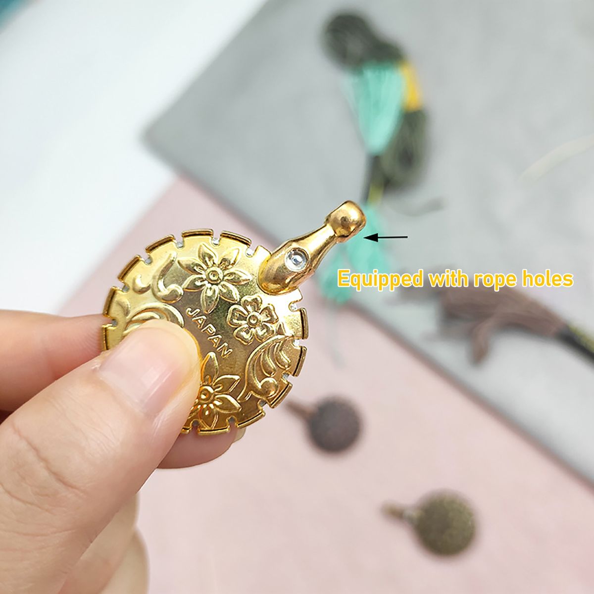 Hanging hole design allows you to attach it to a necklace to wear. Engraved flowers and antique color design brings a vintage look.