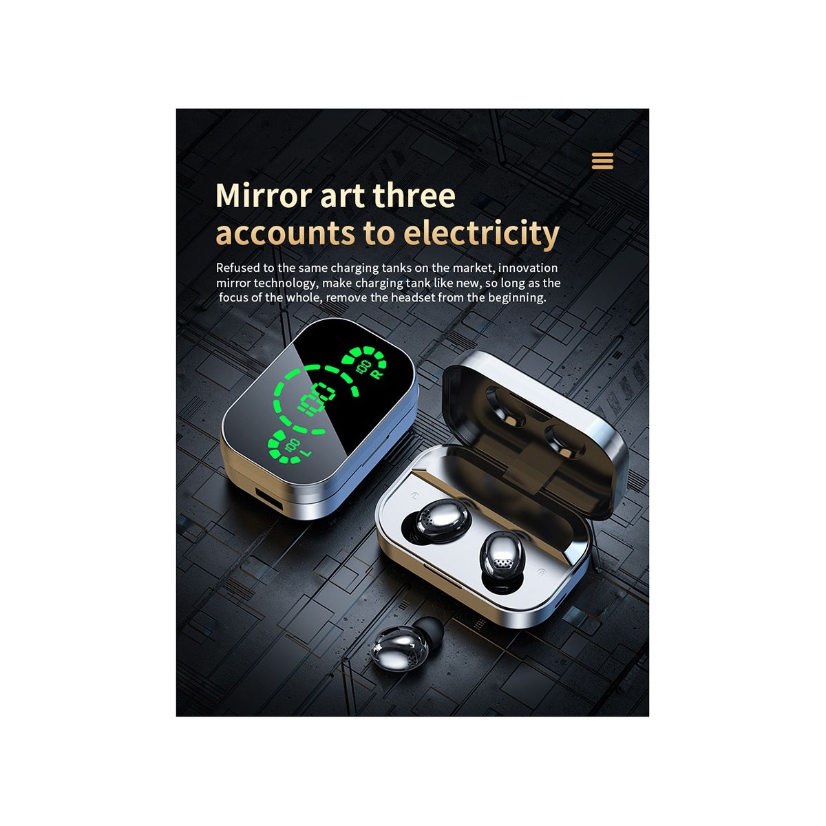 Upgraded LED soft light display, no need to open the cover, the left and right earphones and the remaining power of the charging compartment can be seen at a .