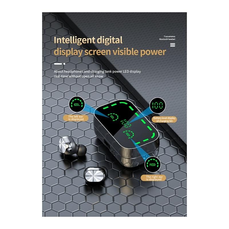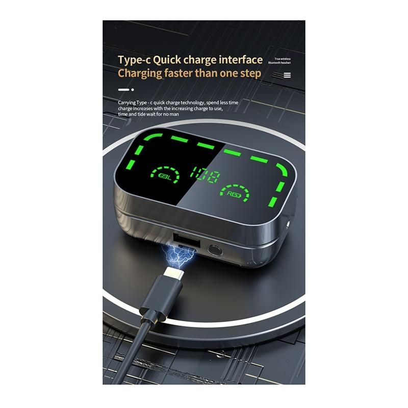 Smart digital display screen, full real-time LED display of left and right earphones and charging compartment power, you can know without opening the cover.