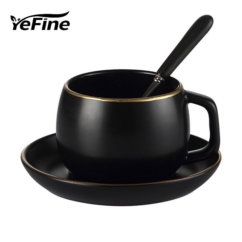 1X YeFine Black Ceramic Clffee Cup Simple Tea Cups Saucers Sets With Spoon European Style Teacup Porcelain Fashion Gift