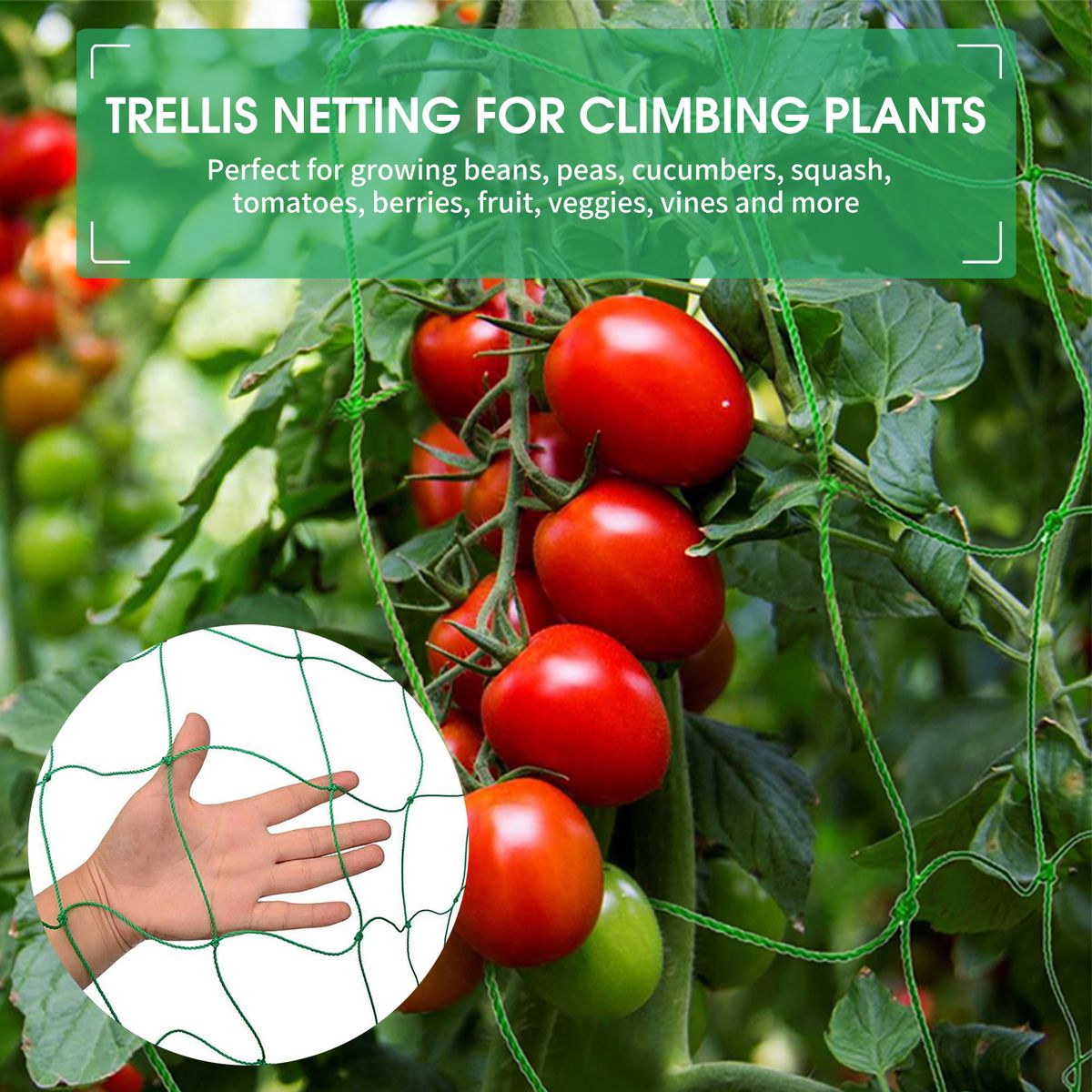 Plants\' trellis netting can make vining plants grab much more readily and easier to reach through to harvest the vegetables. Strong support for pole green beans, peas, cucumbers, tomatoes, bitter melon, mini watermelons, cantaloupes, blackberry, herbs, etc.