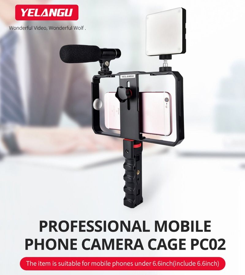 YELANGU YLG0901B Vlogging Live Broadcast Smartphone Plastic Cage Video Rig Filmmaking Recording Handle Stabilizer Bracket for iPhone, Galaxy, Huawei, Xiaomi, HTC, LG, Google, and Other Smartphones (Black)