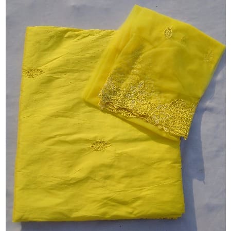 Buy Yellow Embroidered and Beaded Indian Lace George with Blouse - 7 Yards in Nigeria
