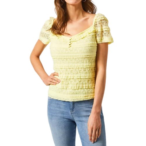 Ladies Floral See Through Blouse With Puff Sleeves Lbs-9411