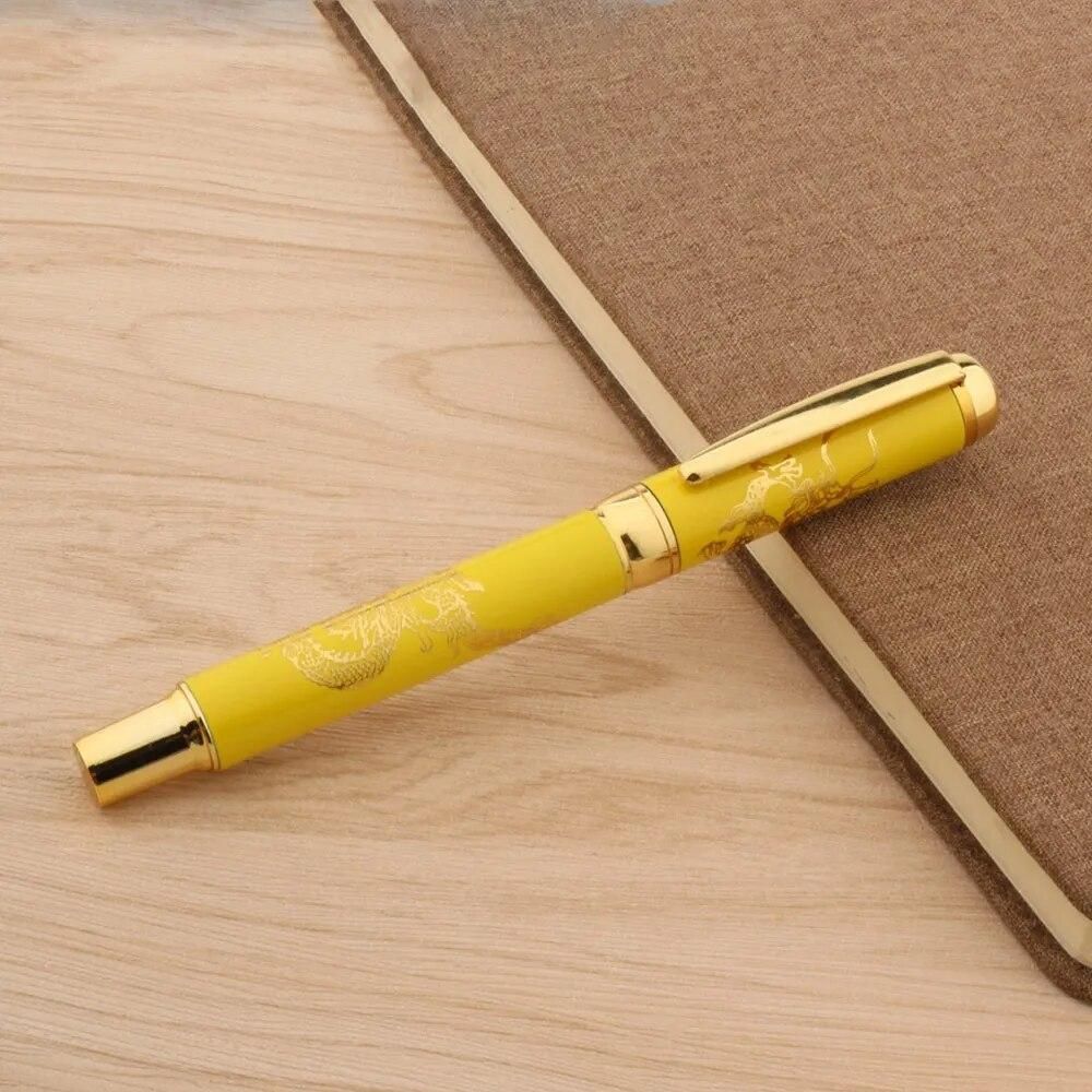 Buy Yellow Lacquerred With Golden Ballpoint pen Painting 0.5mm Roller ball Pens Stationery Office School Supplies Writing in Nigeria
