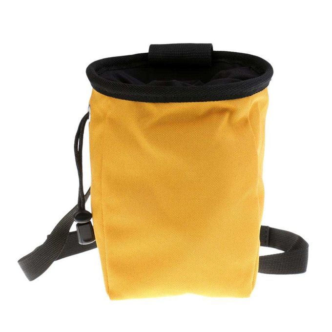 Design with large opening to make chalking up as easy as possible, and with easily close drawstring closure to retain chalk and prevent chalk fall out