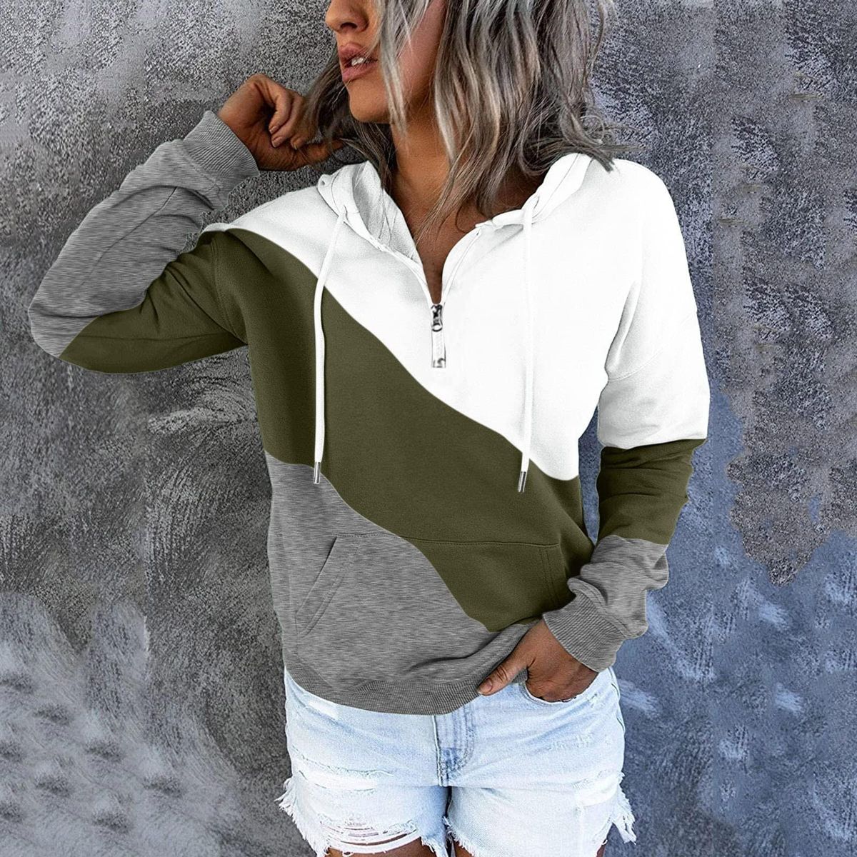 Yes,l Am Cold Me 24:7 Women Loose Long Sleeve Sweatshirt Hooded Hoodie Sweatshirt Blouse Plaid Splicing Long Sleeve Trendy Tops Pullover