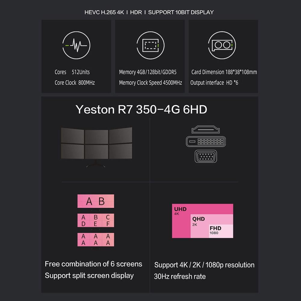 Buy Yeston R7 350-4G 6HD 6-Screen Graphics Card Support Split Screen 4GB/GDDR5/128Bit 4500MHz Memory Clock Frequency 6*HD Ports in Nigeria