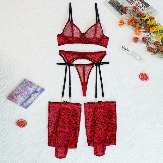 Buy Yimunancy 4-Piece Leopard Mesh Lingerie Set Women Sexy Thong Underwear in Nigeria
