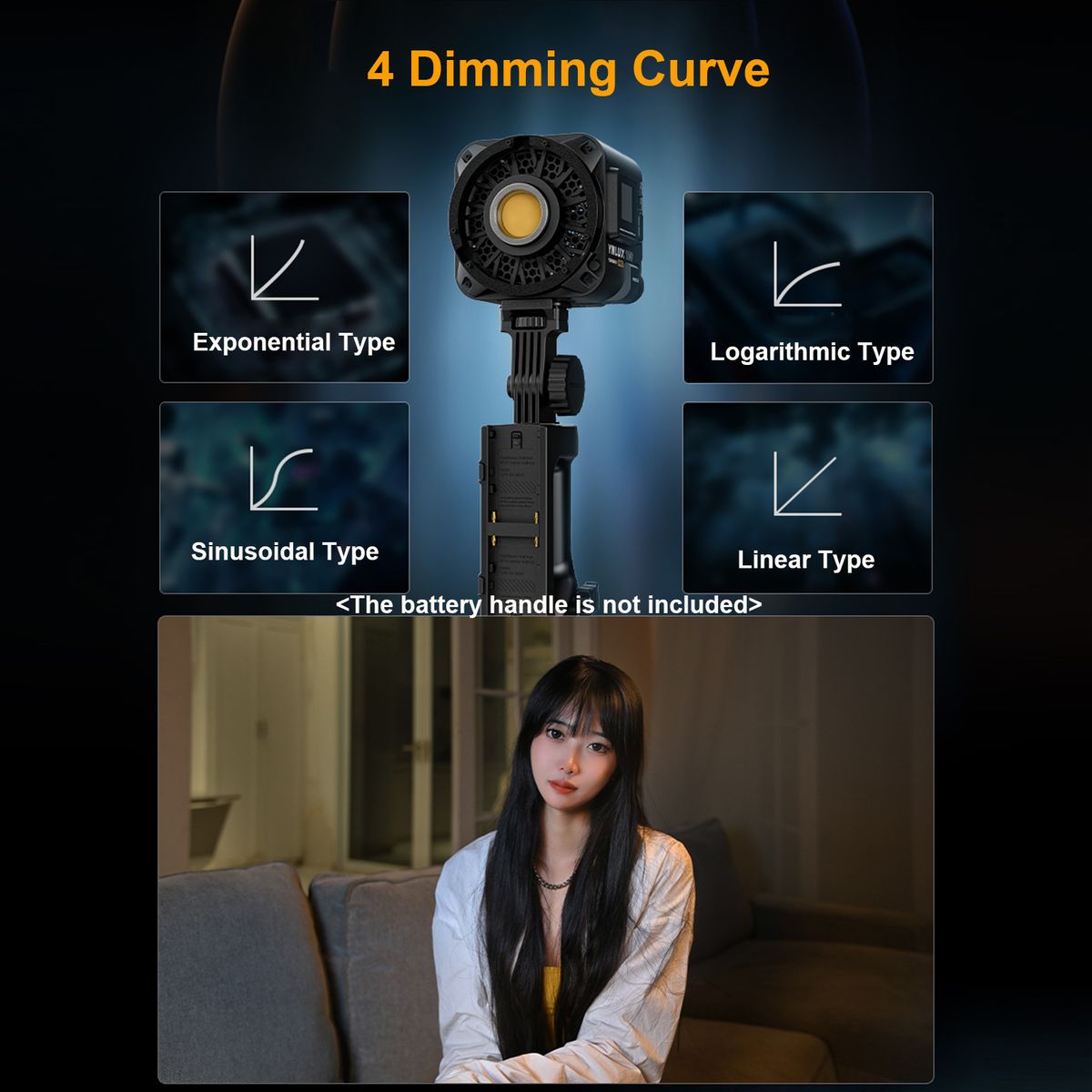 【High Brightness & High CRI】Adopts COB lamp bead, max. 120W high and 95+ high CRI. More chips are applied under the equal , which greatly improves the lighting efficiency. Brightness can be adjusted freely from 0.1%-100%, total 1000 levels. Built-in 4 dimming curve modes for different usage scenarios.