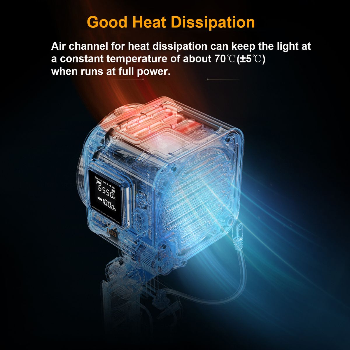 【Good Heat Dissipation and Low Noise Working】The air channel for heat dissipation is designed more reasonably, which keeps the light at a constant temperature of about 70℃(±5℃) when runs at full . Low noise working, which brings you an better usage experience, and the fans can be manually turned off.