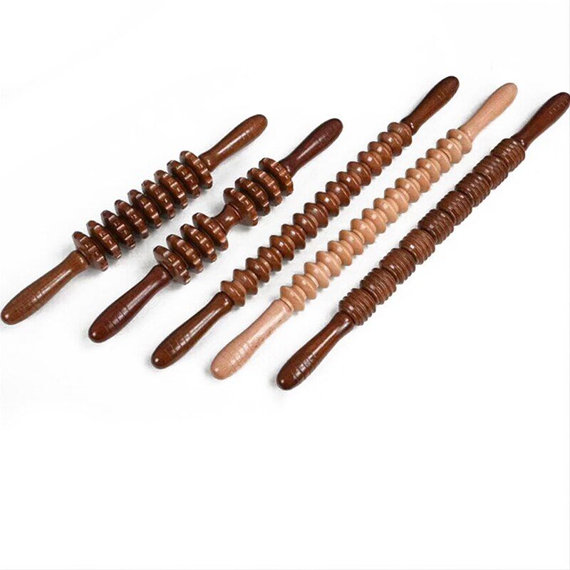 1X Yoga Wooden Meridian Rod Nine Fine Wheel Exercise Roller Sport Injury Gym Body Leg Trigger Point Muscle Roller Sticks Massager