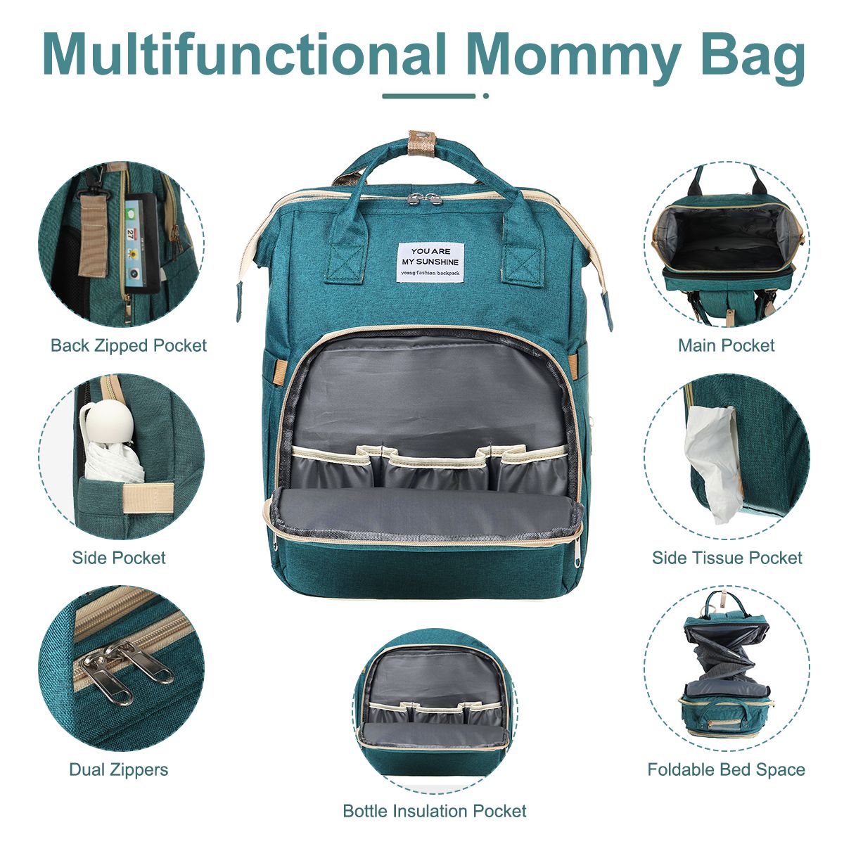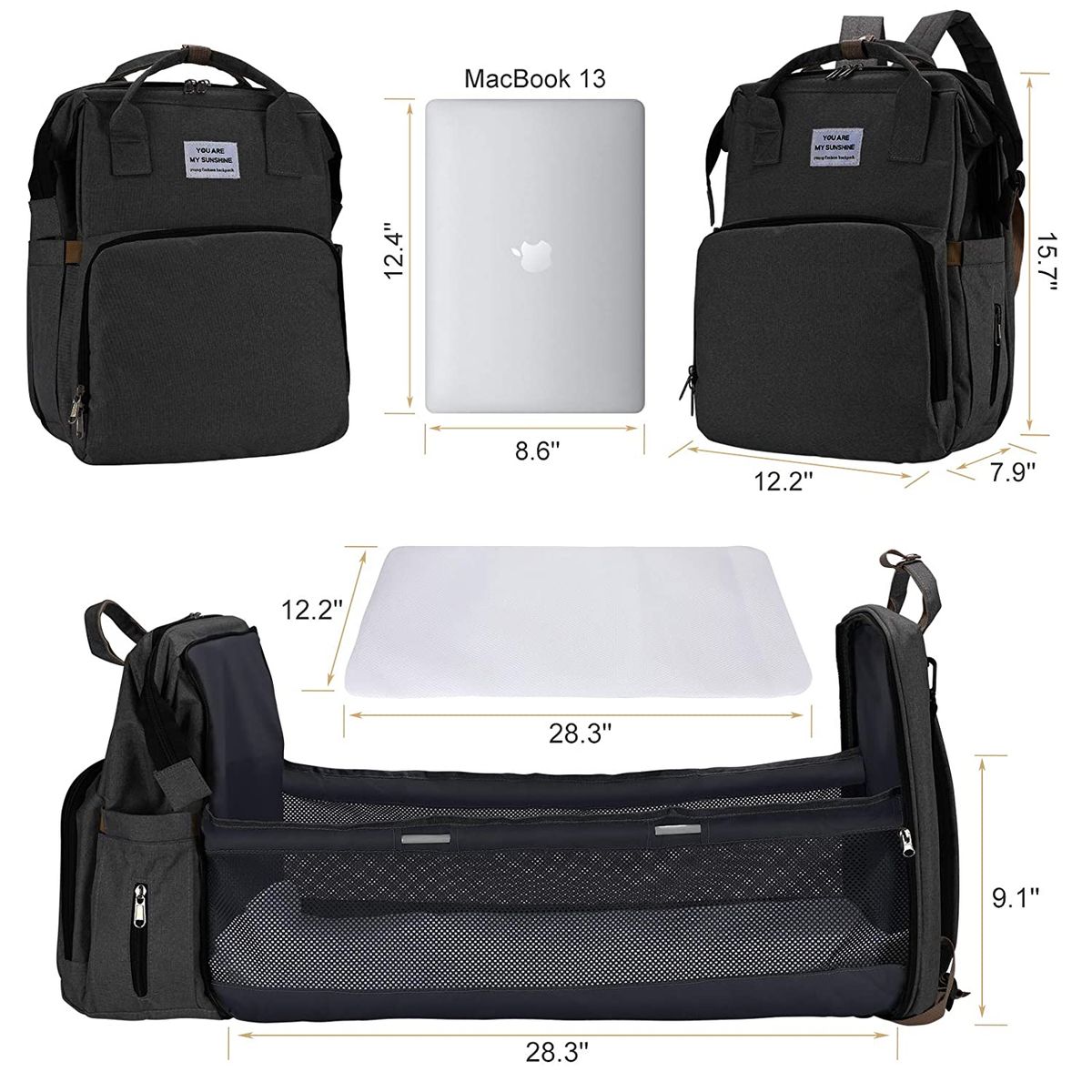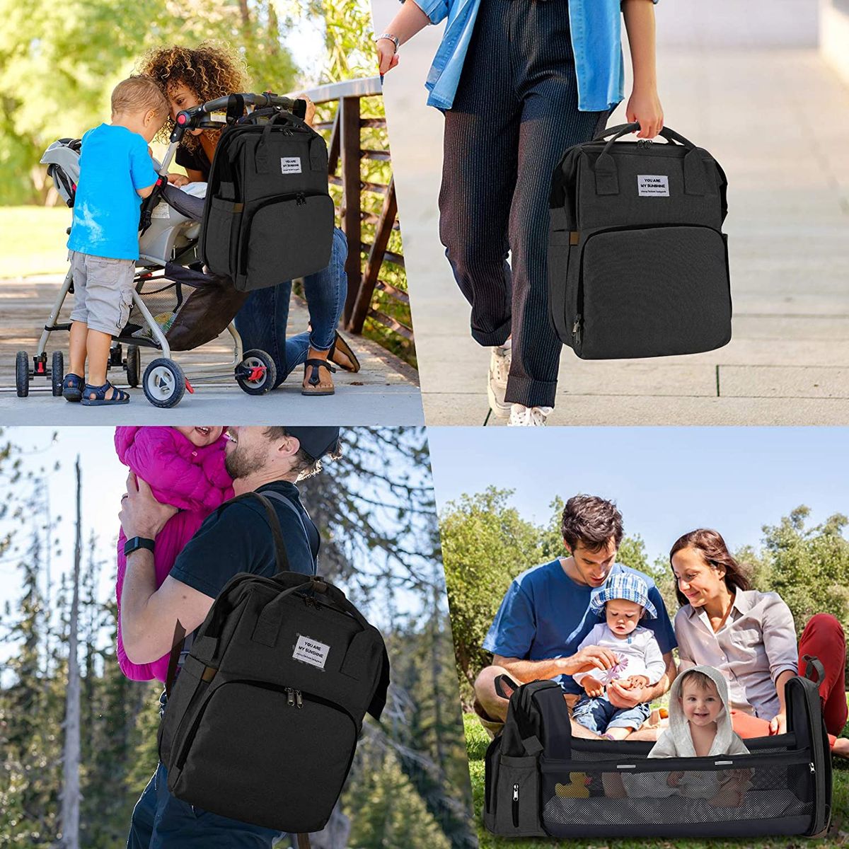 - 3-IN-1 Function Baby Bag: Open and close the bag, to transform it into a baby bed and changing station, or a diaper bag/mommy bag.