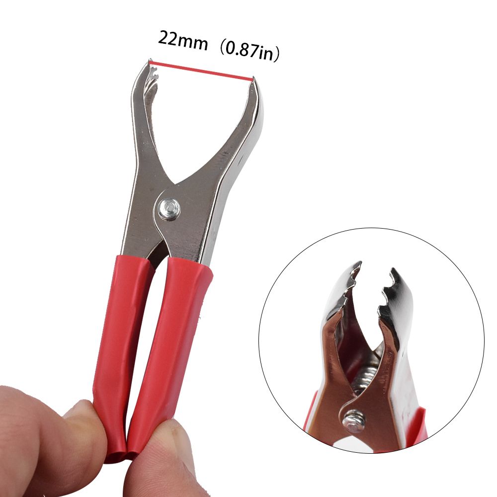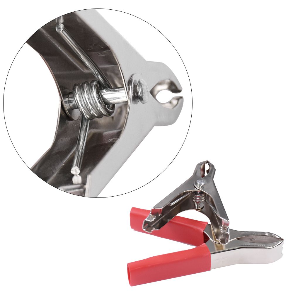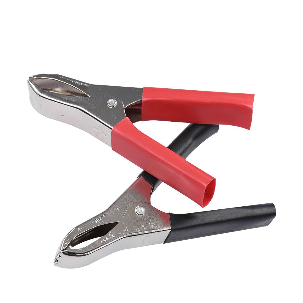 Feature -- Product Name : Car Battery Alligator Clip -- 30A rated current -- Material:Made of good quality metal spring can withstand the preure, easy and safe to use -- Strong spring loaded jaws that open to 1 inch capacity -- Couple battery terminals with positive and negative terminals (red/ black) -- Easy and quick to connect -- Easy to use with a portable lightweight, safe and reliable characteristics -- Large size and light weight with sharp teeth -- Alligator clip clamp connector holds strongly. -- Fit for cars, vehicles, automobiles, etc. Package Included :2x Alligator Clips(1pcs Red+1pcs Black)