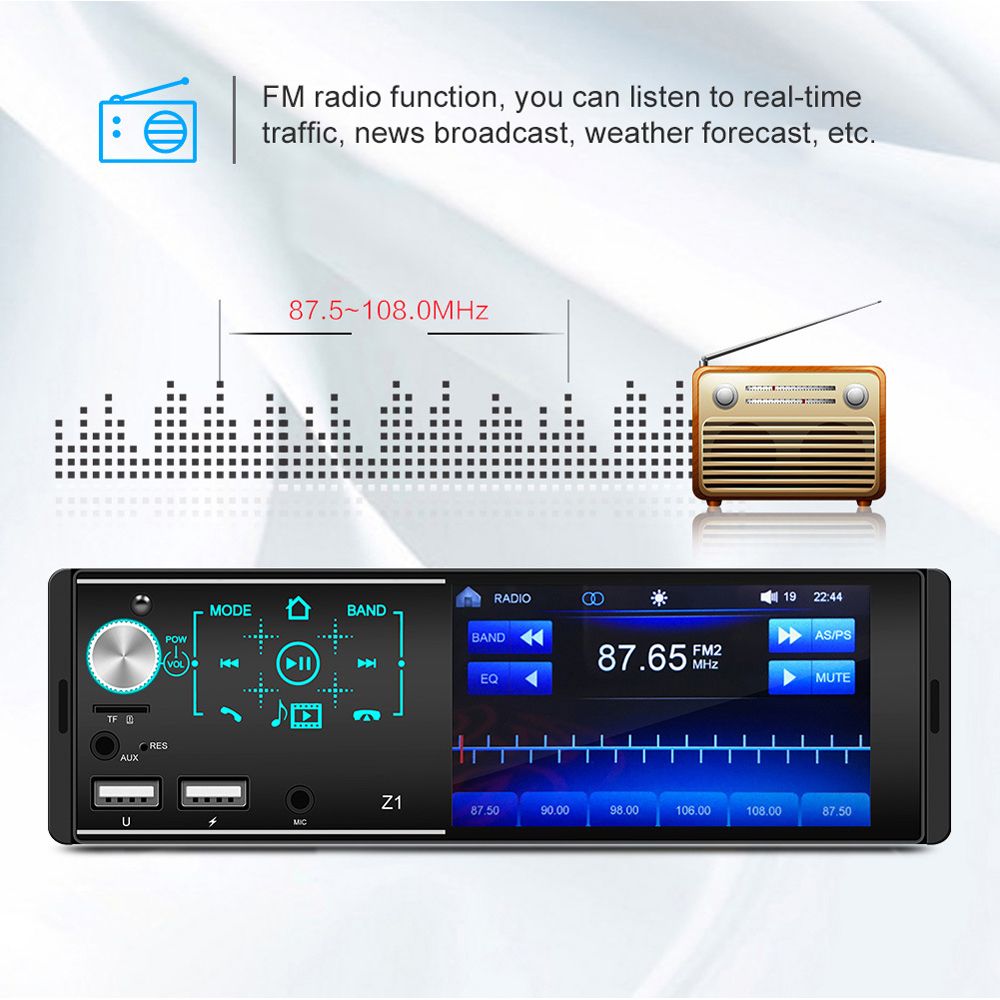 FM radio function, you can listen to real-time traffic, news broadcast, weather forecast, etc.