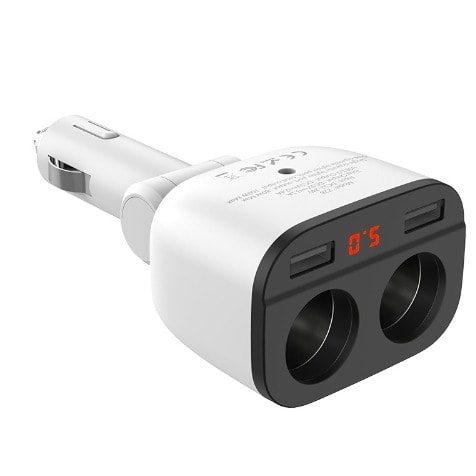 Z28 Power ocean in-car charger with digital display dual USB total 3.1A output and dual cigarette lighter.