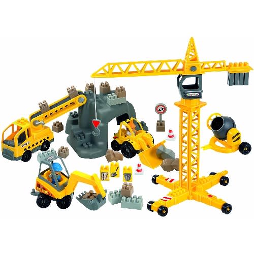 Get busy at the Ecoiffier construction site play set where there are plenty of vehicles to work with. You & rsquo;ll find a mountain, rocks, and a crane, a truck equipped with a functional treadmill, a bulldozer, a mechanical digger and cement mixer. Also consists of a figure with 86 accessories in total. Layout the quarry site to your own design but be sure not to let the rocks tumble. A great way to encourage role play.