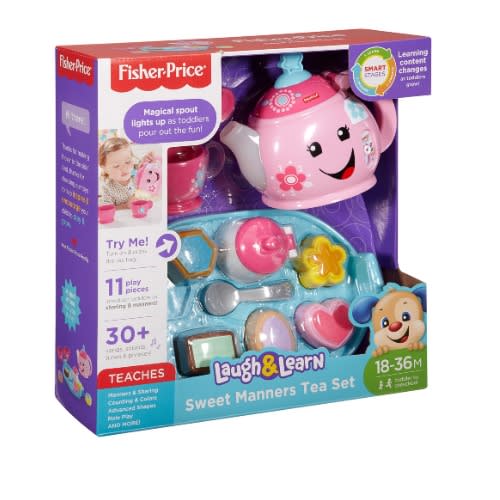 Interactive toy tea set with & ldquo;magical & rdquo; light-up teapot and 30+ songs, sounds and phrases! Encourages early role-play for toddlers ages 18-36 months