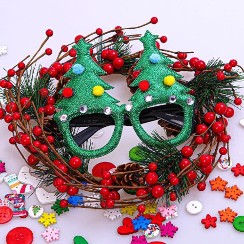Features and Benefits:Easy to use and very beautiful.Funny Christmas Ornaments Glasses Frames Evening Party Toy Kids Xmas Gifts DecorNovelty Christmas spectacle frames will add fun to your celebrations.Suitable to wear at Christmas, carnival, masquerade, and parties