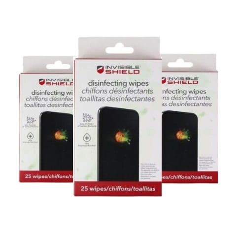 Invisible Shield Device Wipes - Pack of 3 can be used for Smartphones, Tablets, Camera lens and other electronics to clean surfaces and screens. It cleans dirt, stains, sticky grime and also disinfect. It kills 99.99% of surface bacteria, contains 70-percent isopropyl alcohol. This wiper is safe to use and non-toxic, Will not damage oil resistant coatings.- 70-percent isopropyl alcohol - Cleans electronic surfaces - Safe, non toxic - Will not damage oil resistant coating - Each pack contains 25 individually wrapped disinfecting wipes