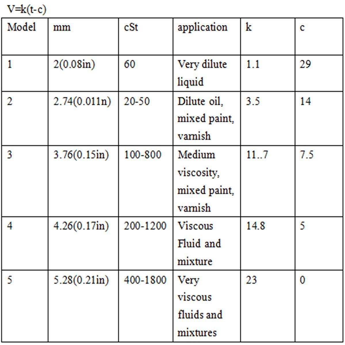 between 20-80 seconds. The viscosity cup is widely used in printing ink,