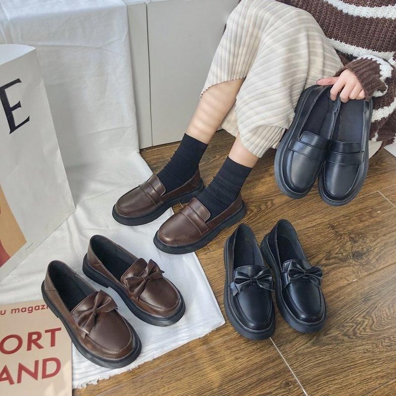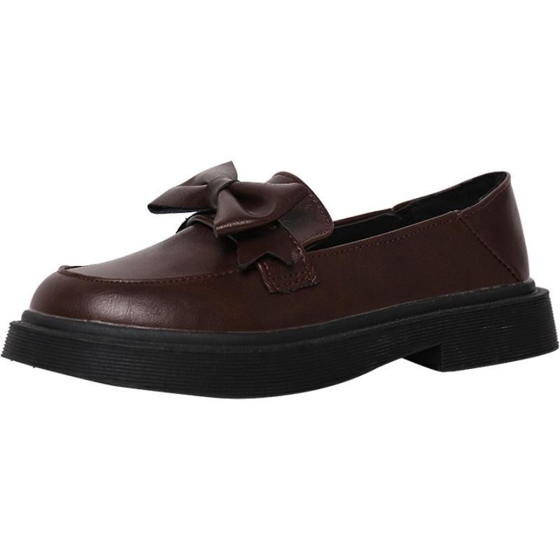 Zapatos de tacon bajo para mujer, mocasines con lazo de cuero liso, sin cordones, puntiagudos, tacones gruesos, Oxfords, Primavera