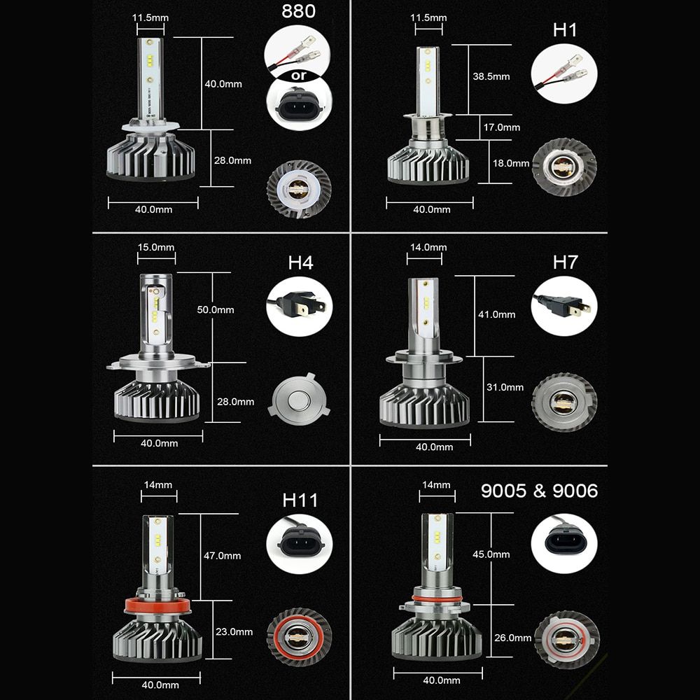 Single Beam: H1, H7, H11/H8/H9, 9005/HB3, 9006/HB4, 6 pcs ZES chips/set.