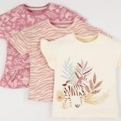 This 3-pack of pretty t-shirts from primark features three different designs 3 pcs t shirt in colorful vibrant prints. Made from soft cotton for all-day long comfort. Perfect for their everyday essentials wardrobe.