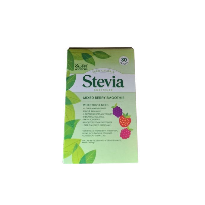 Keep a check on blood glucose levels and manage your weight much better with the Sweet Additions Stevia/Erythritol blend. This sweetener is great in your beverages and deserts, it has no after taste. Each pack contains 80 satchets.