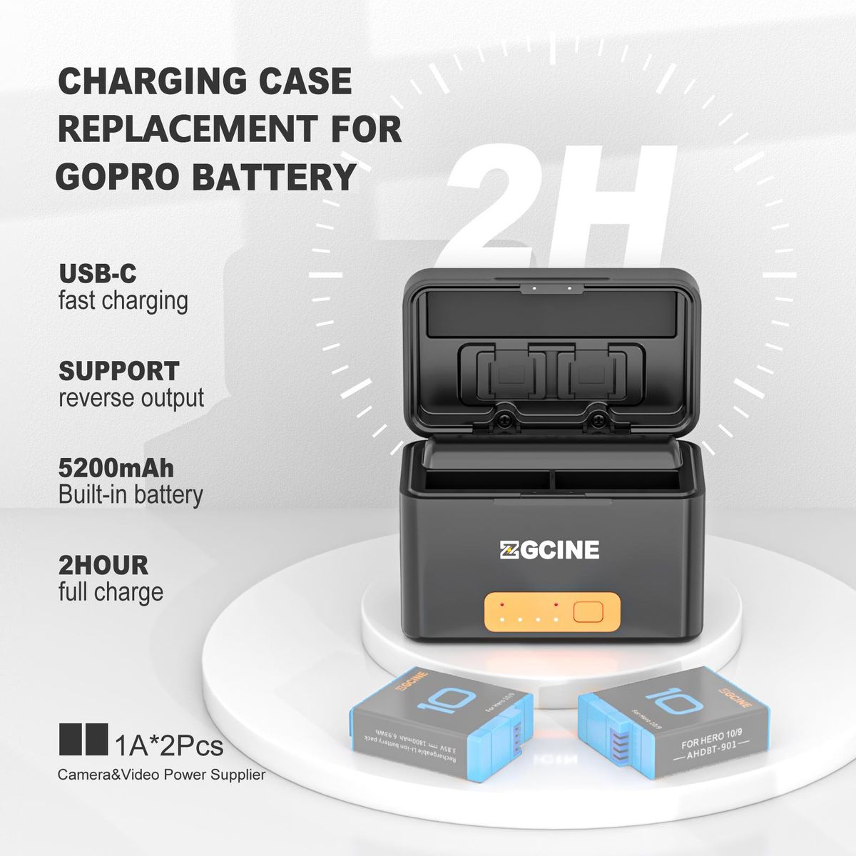 Buy ZGCINE PS-G10 mini Portable Sports Camera Battery Fast Charging Case 5200mAh Wireless Dual Battery Charger with Type-C Port Replacement for GoPro Hero 10 9 8 7 6 5 in Nigeria