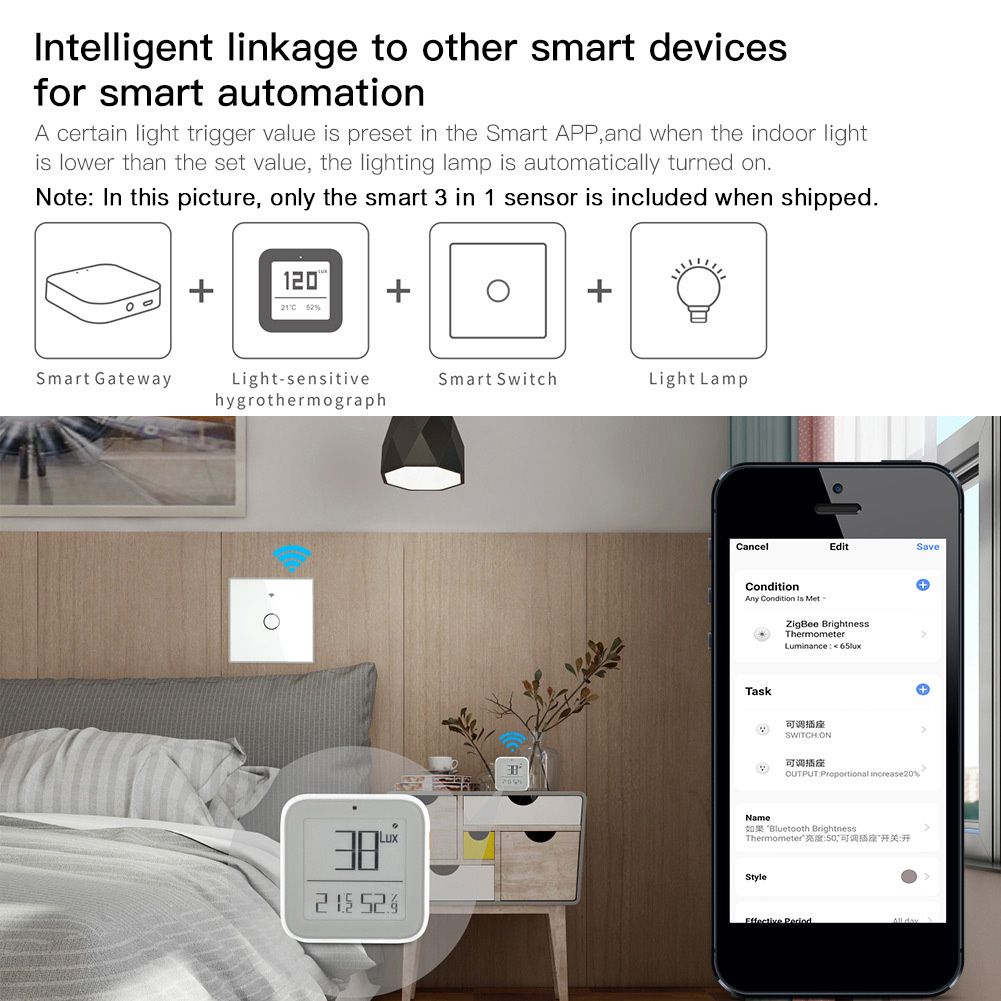 3 in 1 smart sensor can detect real-time temperature and humidity indoors; light intensity detection helps you feel the environment change.