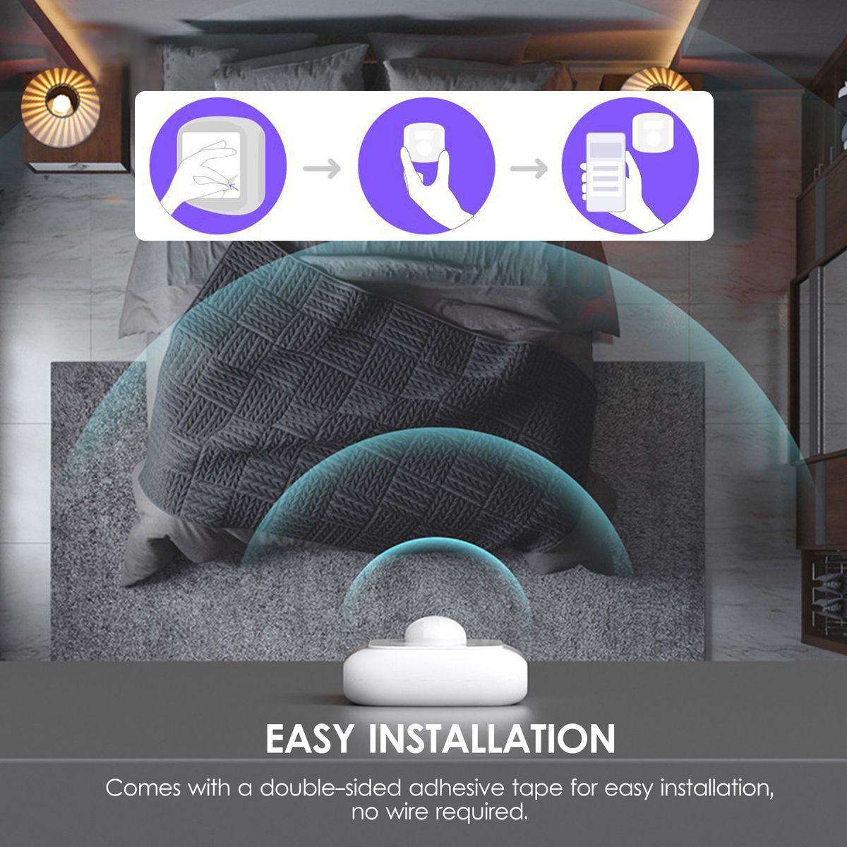 APP Control amp; Alarm Notification: Easy to control the sensor via APP, when it detects human movement within the detection range, it will push alarm notifications to your smartphone.