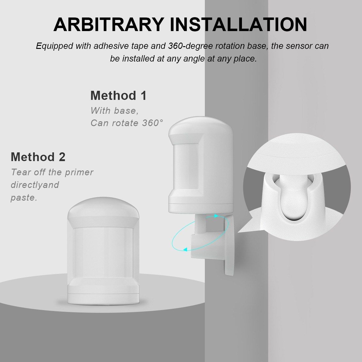 [Arbitrary Installation] Equipped with adhesive tape and 360-degree rotation base, the sensor can be installed at any angle at any place.