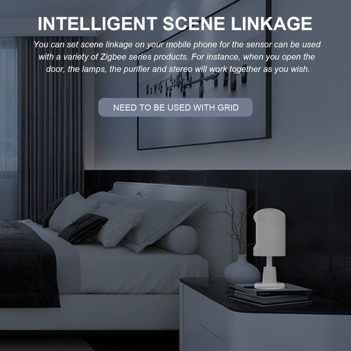 [Intelligent Scene Linkage] You can set scene linkage on your mobile phone for the sensor can be used with a variety of Zigbee series products. For instance, when you open the door, the lamps, the purifier and stereo will work together as you wish.