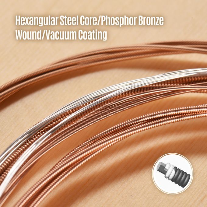 1-6 strings are all made of hexagonal steel core of American high carbon steel with high timbre output balance; timbre is full and of strong particle sense.