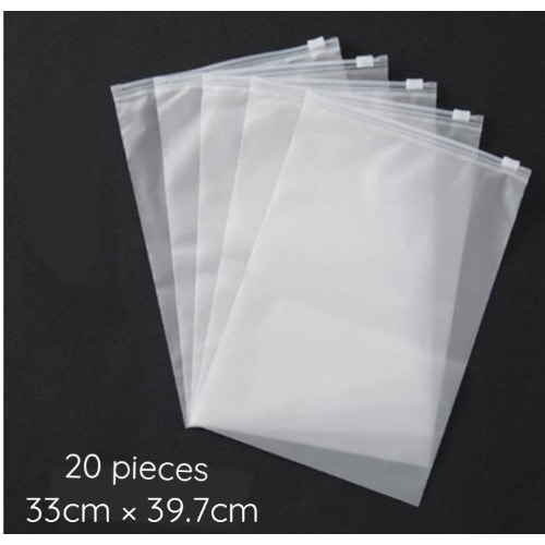 A set of 10pcs Transparent Packaging Bags With Green Handle ; same size 25cm×50cm+7cm.