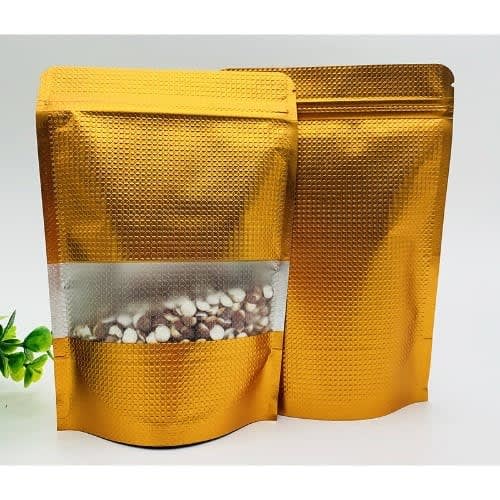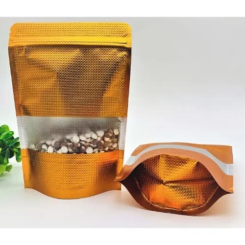 Buy Zip Lock Pouches With Silver Foil Lining And Frosted Window - 100 Pcs - 22cm By 30cm - Burnt Gold in Nigeria
