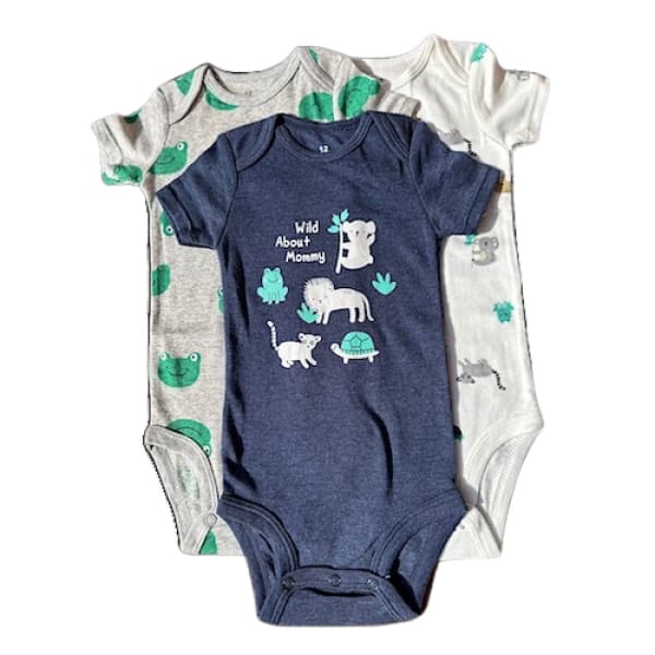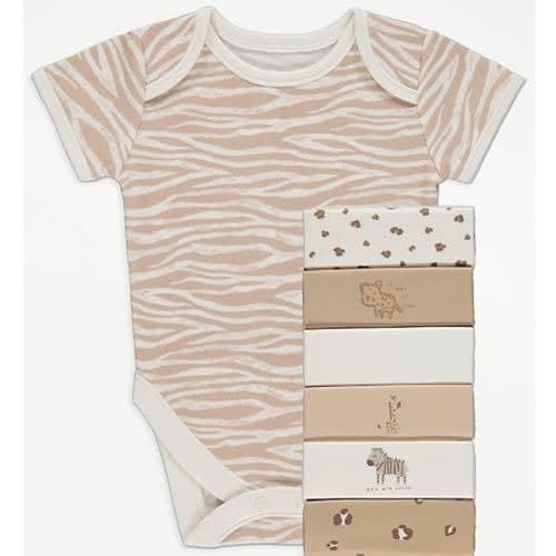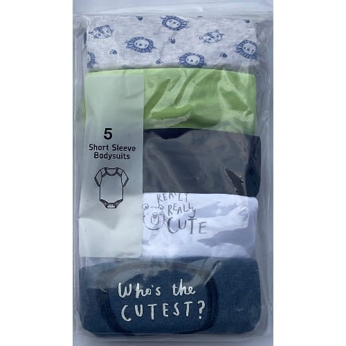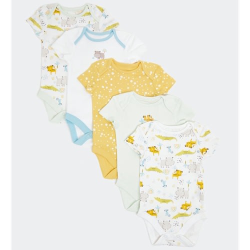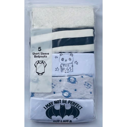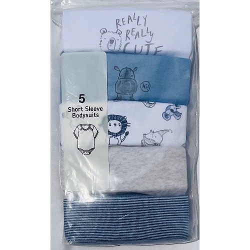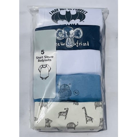 Assorted Animal Safari Print Short Sleeve Bodysuits 5 Pack 3-6 Months
